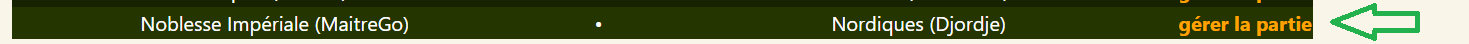 Pour renseigner les résultats, cliquer sur le lien « gérer la partie » :