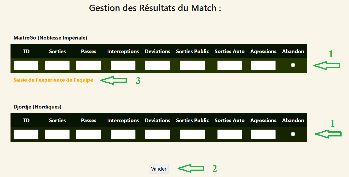Saisir les gains des joueurs (TD, blessures infligées, ...) puis cliquer sur « Ajouter ».